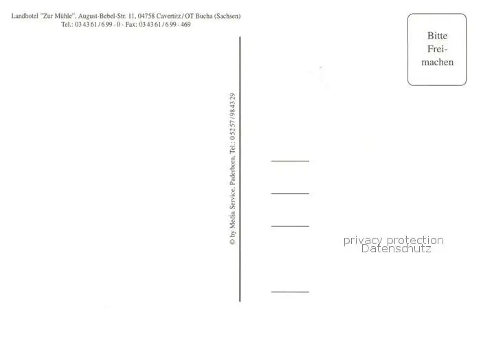 Bucha_Cavertitz Kategorie Alte Ansichtskarten Postkarten kr30185 Bucha_Cavertitz Landhotel Zur Muehle Restaurant Fremdenzimmer Wellness Kinderspielplatz postalisch nicht gelaufen nach 1965 Erhaltung siehe scans [FriedD77]