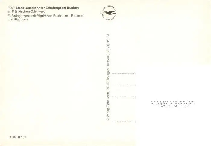 Buchen_Odenwald Fussgaengerzone mit Pilgrim von Buchheim-Brunnen und Stadtturm Buchen Odenwald postalisch nicht gelaufen nach 1965 Erhaltung siehe scans [FriedD77] Frierer
