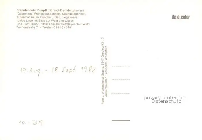 Buchet_Lam Fremdenheim Dimpfl Gaststube Gaestezimmer Buchet_Lam postalisch nicht gelaufen 1982 Erhaltung siehe scans [WerneD78] WernPID7