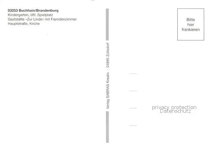 Buchhain Kindergarten Spielplatz Gaststaette Hauptstrasse Kirche Doberlug-Kirchhain postalisch nicht gelaufen nach 1965 Erhaltung siehe scans [FriedD77] Frierer