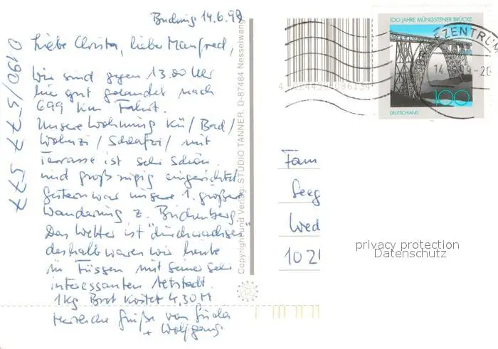 Buching Panorama Kapelle Geiselstein Bayerniederhofen Alpen Viehtraenke Kenzengebiet Schloss Neuschwanstein Buching postalisch gelaufen 1999 Erhaltung siehe scans [FriedD77] Frierer