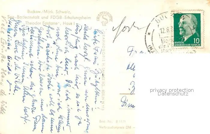 Buckow_Maerkische_Schweiz See Badeanstalt FDGB Erholungsheim Theodor Fontane Haus I Buckow_Maerkische_Schweiz postalisch gelaufen 1963 Erhaltung siehe scans [FriedD77] Frierer
