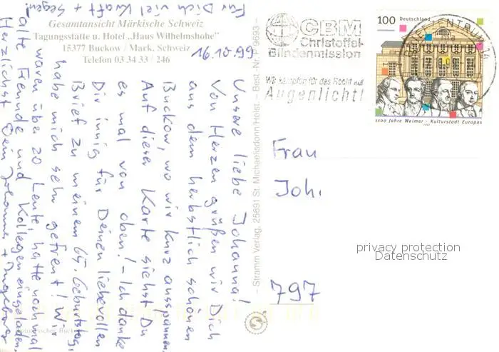 Buckow_Maerkische_Schweiz_Bad Fliegeraufnahme mit Hotel Haus Wilhelmshoehe Buckow_Maerkische postalisch gelaufen 1999 Erhaltung siehe scans [FriedD77] Frierer