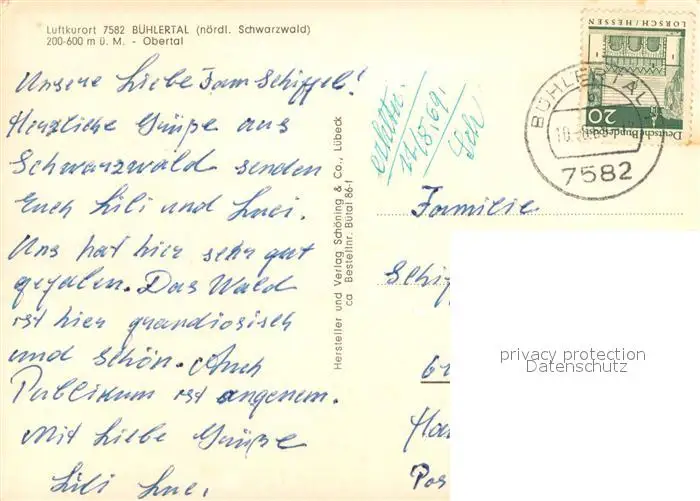Buehlertal Panorama Obertal Buehlertal postalisch gelaufen 1969 Erhaltung siehe scans [FriedD77] Frierer
