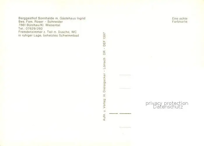 Buerchau Berggasthof Sonnhalde Reiten Swimming Pool Kleines Wiesental Schwarzwald Buerchau postalisch nicht gelaufen nach 1965 Erhaltung siehe scans [FriedD77] Frierer