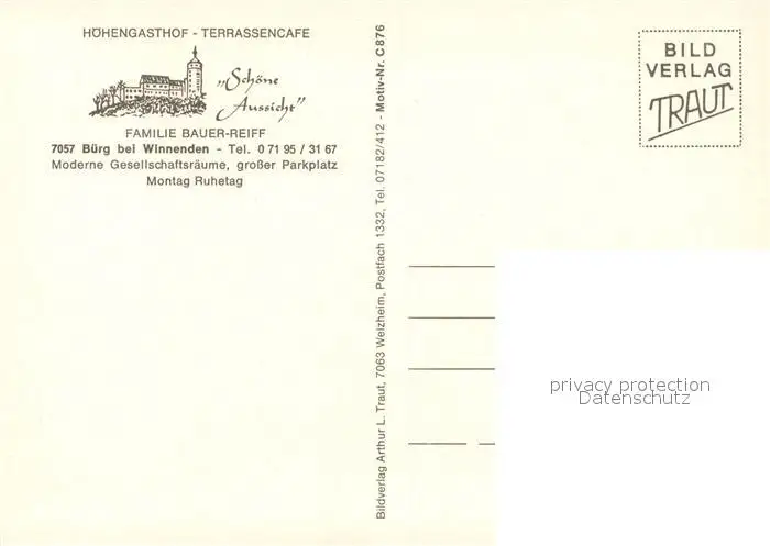 Buerg_Winnenden Hoehengasthof Terrassencafe Buerg Winnenden postalisch nicht gelaufen nach 1965 Erhaltung siehe scans [WerneD78] WernPID7
