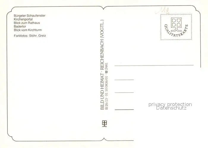 Buergel Thueringen Buergeler Schaufenster Kirchenportal Rathaus Badertor Stadtpanorama Buergel postalisch nicht gelaufen nach 1965 Erhaltung siehe scans [FriedD77] Frierer