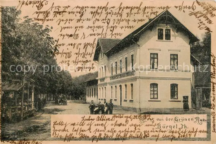 Buergel__Thueringen Gruenen Aue postalisch gelaufen 1902 Erhaltung siehe scans [LiesaD40] LiesID40