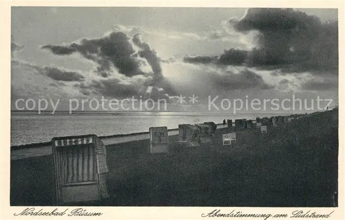 Buesum_Nordseebad Abendstimmung Suedstrand Buesum_Nordseebad postalisch nicht gelaufen 1921-1965 Erhaltung siehe scans [KathaD81] Kathoren
