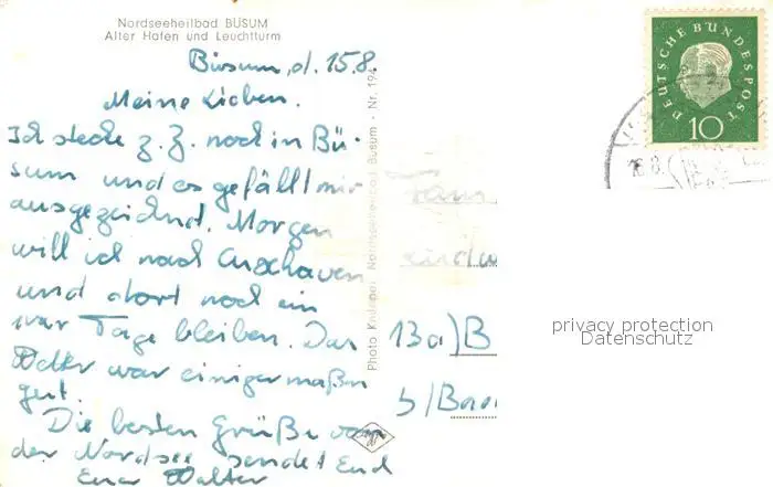 Buesum_Nordseebad Alter Hafen und Leuchtturm Buesum_Nordseebad postalisch gelaufen 1921-1965 Erhaltung siehe scans [WerneD78] WernPID7
