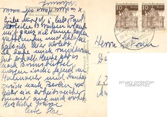 Buesum_Nordseebad Camping Nordsee Fliegeraufnahme Buesum_Nordseebad postalisch gelaufen nach 1965 Erhaltung siehe scans [FriedD77] Frierer
