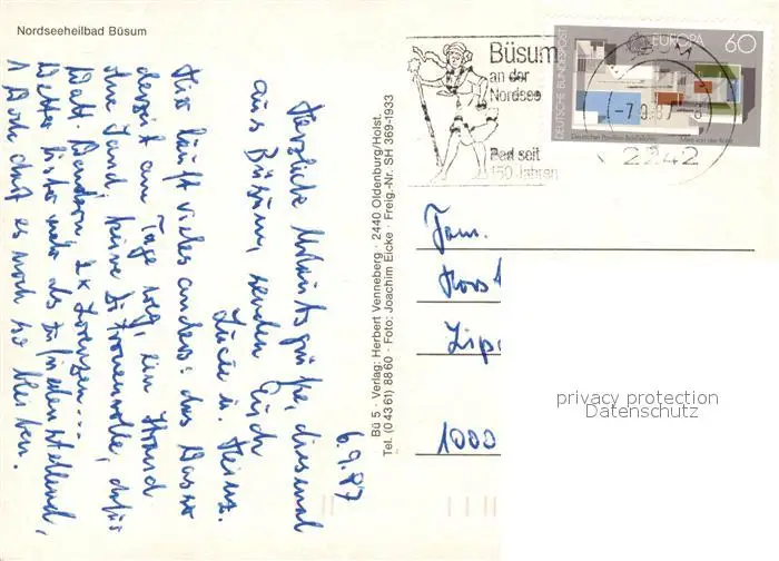 Buesum_Nordseebad Fliegeraufnahme Buesum_Nordseebad postalisch gelaufen 1987 Erhaltung siehe scans [KathaD81] Kathoren