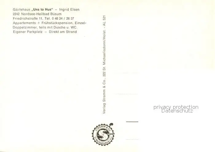 Buesum_Nordseebad Gaestehaus Uns to Hus Appartement Zimmer Buesum_Nordseebad postalisch nicht gelaufen nach 1965 Erhaltung siehe scans [FriedD77] Frierer