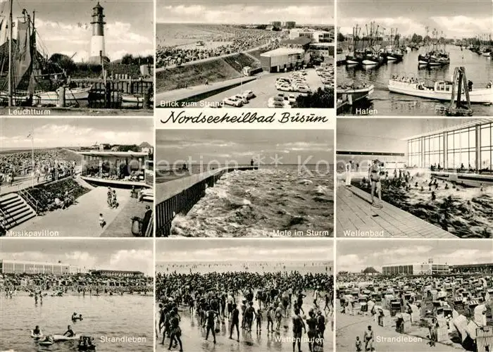 AK / Ansichtskarte Buesum_Nordseebad Hafen Leuchtturm Strand Mole Wellenbad Musikpavillon Wattwanderung Buesum_Nordseebad
