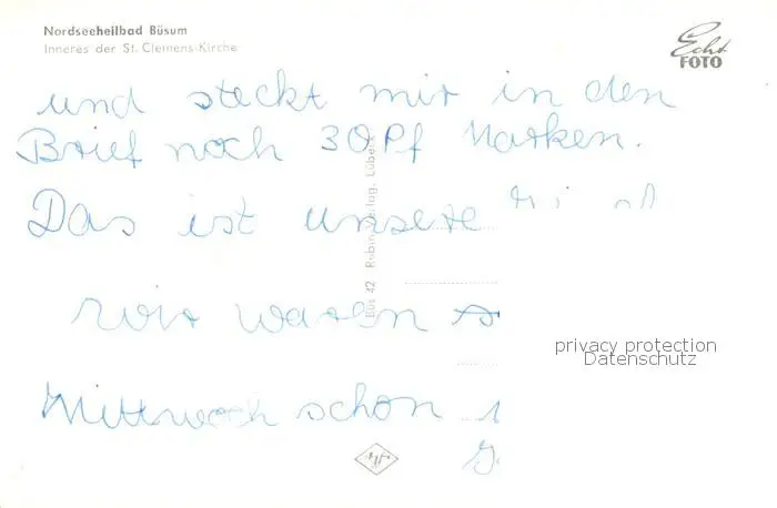 Buesum_Nordseebad Inneres der St. Clemens Kirche Buesum_Nordseebad postalisch nicht gelaufen nach 1965 Erhaltung siehe scans [FriedD77] Frierer