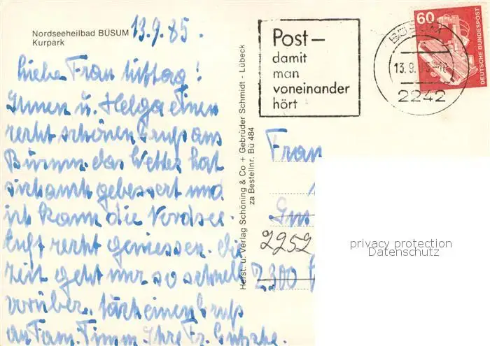 Buesum_Nordseebad Kurpark Buesum_Nordseebad postalisch gelaufen 1985 Erhaltung siehe scans [FriedD77] Frierer