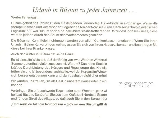 Buesum_Nordseebad Pension Achtern Diek Ferienappartments Buesum_Nordseebad postalisch nicht gelaufen nach 1965 Werbekarte (keine Postkarte) Erhaltung siehe scans [FriedD77] Werbekarte (keine Postkarte) Frierer