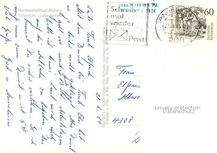 Buesum_Nordseebad Strand Hafen Fliegeraufnahme Buesum_Nordseebad postalisch gelaufen 1984 Erhaltung siehe scans [FriedD77] Frierer