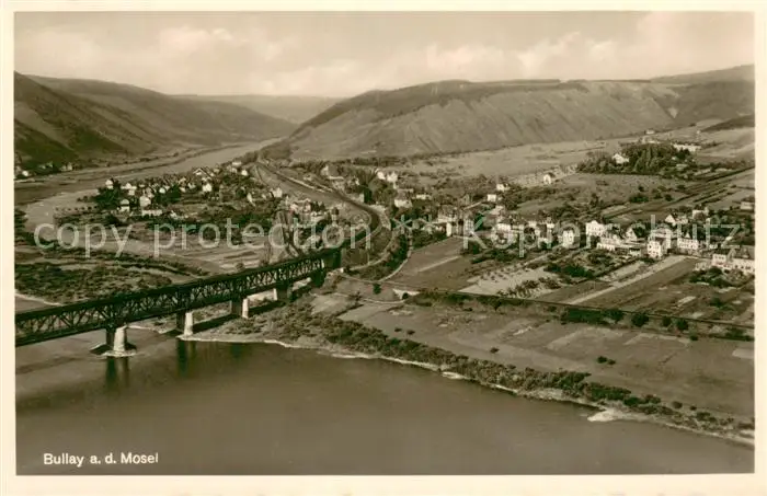 Bullay_Mosel Fliegeraufnahme mit Moselbruecke Bullay_Mosel postalisch nicht gelaufen 1921-1965 Erhaltung siehe scans [FriedD77] Frierer