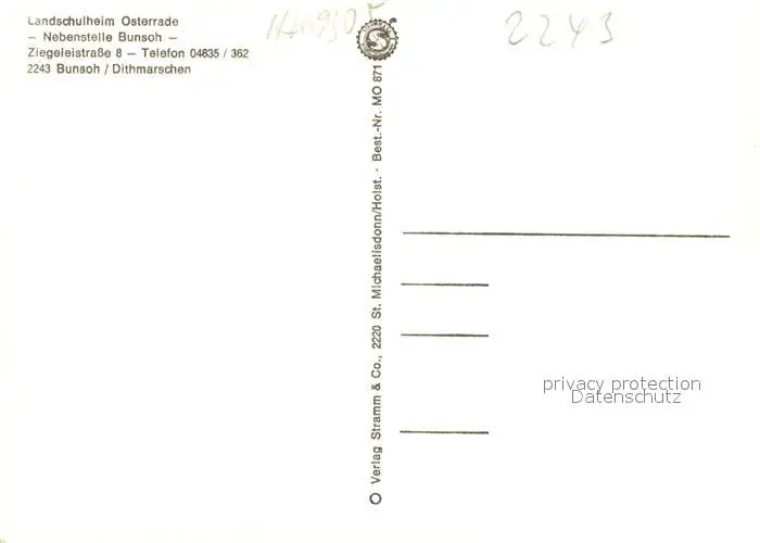 Bunsoh_Dithmarschen Landschulheim Osterrade Bunsoh Dithmarschen postalisch nicht gelaufen nach 1965 Erhaltung siehe scans [FriedD77] Frierer