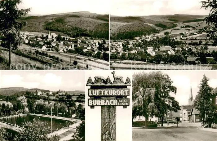 AK / Ansichtskarte Burbach_Siegerland Panorama Freibad Ortspartie Burbach_Siegerland