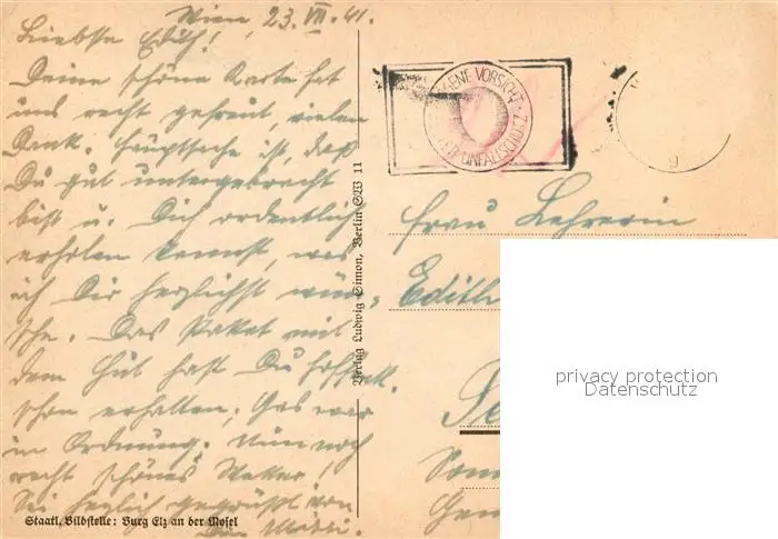 Burg_Eltz Burg_Eltz postalisch gelaufen 1941 Erhaltung siehe scans [NatalD47] NataID47
