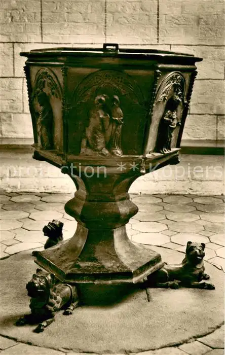 AK / Ansichtskarte Burg_Fehmarn Alte Bronzetaufe von 1391 in der St. Nikolai Kirche Burg Fehmarn
