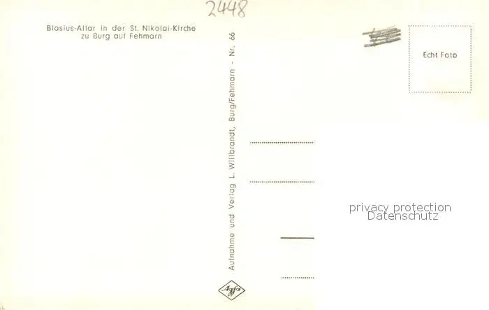 Burg_Fehmarn Blasius-Altar in der St. Nikolai Kirche Burg Fehmarn postalisch nicht gelaufen 1921-1965 Erhaltung siehe scans [FriedD77] Frierer