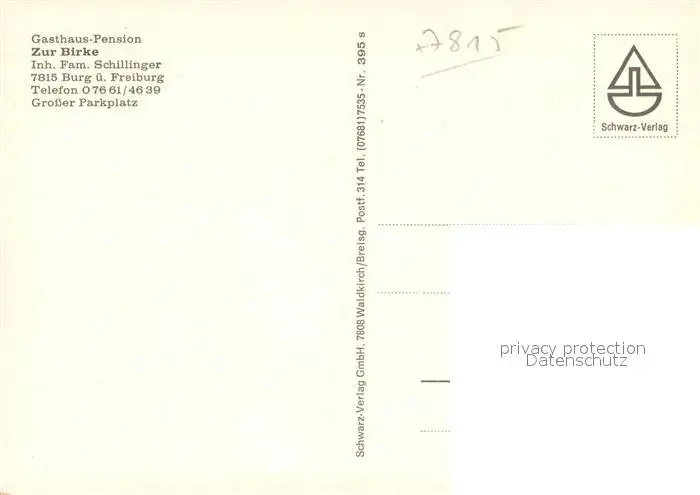 Burg_Kirchzarten Gasthaus Pension zur Birke Restaurant Hirschsprung Felsen postalisch nicht gelaufen nach 1965 Erhaltung siehe scans [FriedD77] Frierer