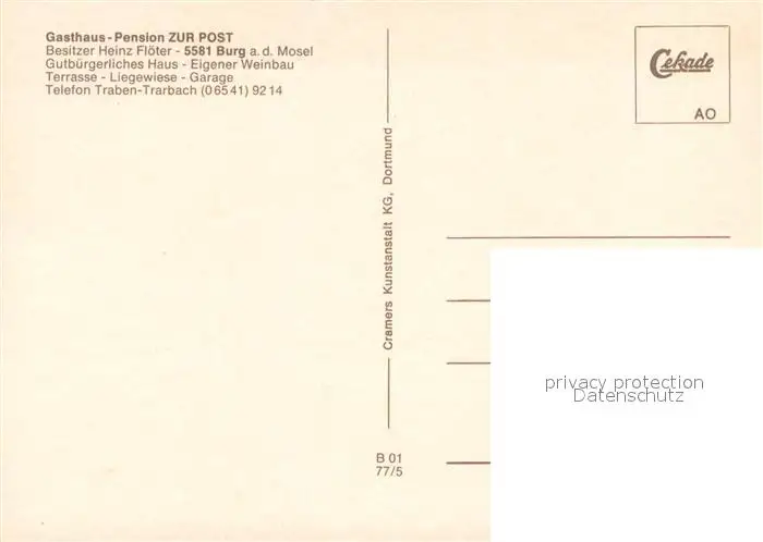 Burg_Mosel Gasthaus zur Post Gaststube Weinstube Weinkeller Speisesaal Moselterrasse Burg_Mosel postalisch nicht gelaufen nach 1965 Erhaltung siehe scans [WerneD78] WernPID7