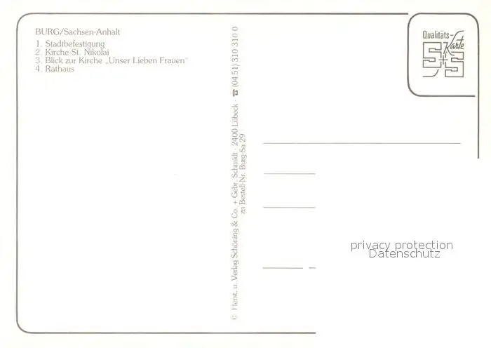 Burg_Sachsen-Anhalt Stadtbefestigung Kirche Sankt Nikolai Unser Lieben Frauen Rathaus Burg Sachsen-Anhalt postalisch nicht gelaufen nach 1965 Erhaltung siehe scans [KathaD81] Kathoren