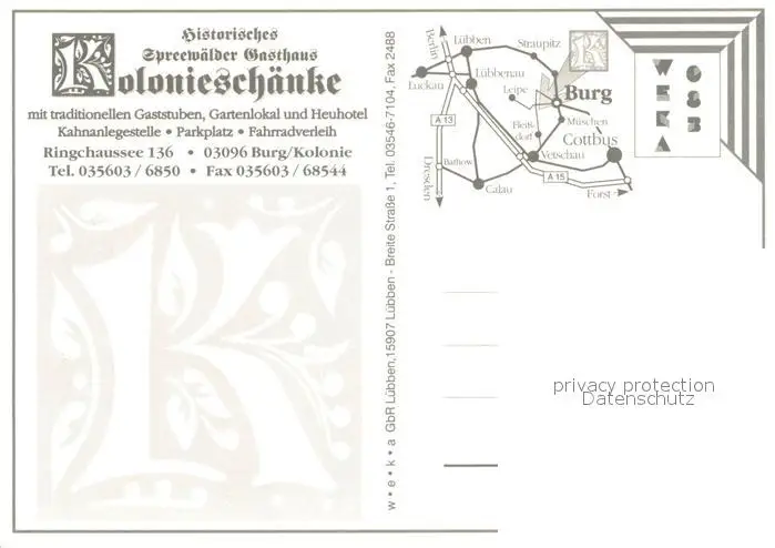 Burg_Spreewald Gasthaus Koloniesch?nke Tracht Burg Spreewald postalisch nicht gelaufen nach 1965 Erhaltung siehe scans [LiesaD40] LiesID40