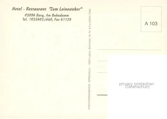 Burg_Spreewald Hotel Restaurant Zum Leineweber Wasserstrasse Kahnfahrt Burg Spreewald postalisch nicht gelaufen nach 1965 Erhaltung siehe scans [FriedD77] Frierer