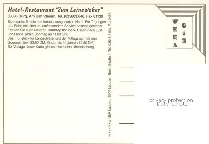 Burg_Spreewald Hotel Restaurant Zum Leinweber Brunch Burg Spreewald postalisch nicht gelaufen nach 1965 Erhaltung siehe scans [FriedD77] Frierer
