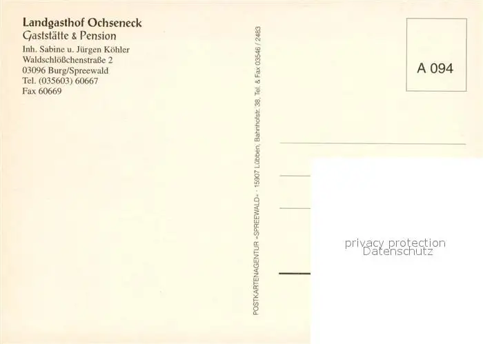 Burg_Spreewald Landgasthof Ochseneck Gaststaette Pension Fremdenzimmer Burg Spreewald postalisch nicht gelaufen nach 1965 Erhaltung siehe scans [FriedD77] Frierer