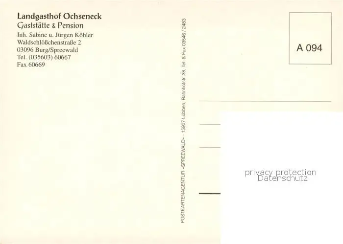 Burg_Spreewald Landgasthof Ochseneck Restaurant Fremdenzimmer Burg Spreewald postalisch nicht gelaufen nach 1965 Erhaltung siehe scans [FriedD77] Frierer