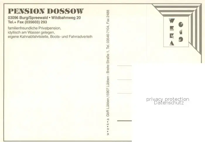 Burg_Spreewald Pension Dossow Zimmer Spreepartie Burg Spreewald postalisch nicht gelaufen nach 1965 Erhaltung siehe scans [WerneD78] WernPID7