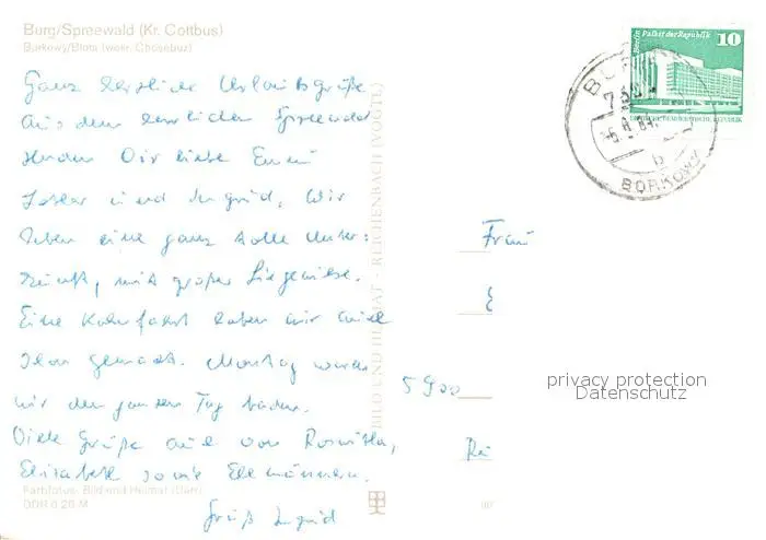 Burg_Spreewald Teilansichten Wasserstrassen Burg Spreewald postalisch gelaufen 1984 Erhaltung siehe scans [FriedD77] Frierer
