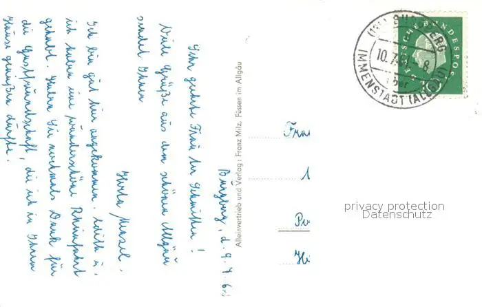 Burgberg_Allgaeu Gesamtansicht mit Alpenpanorama Gruenten Denkmal Starzlachklamm Wasserfall Burgberg Allgaeu postalisch gelaufen 1961 Erhaltung siehe scans [FriedD77] Frierer