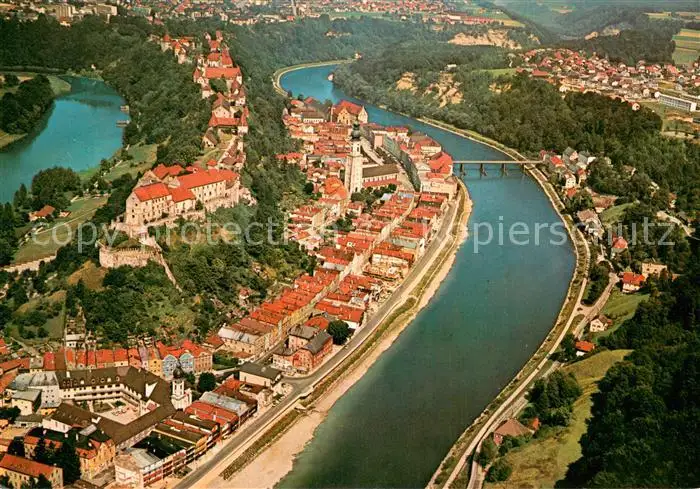 Burghausen_Salzach Deutschlands laengste Burg Burghausen Salzach postalisch nicht gelaufen nach 1965 Fliegeraufnahme Erhaltung siehe scans [FriedD77] Fliegeraufnahme Frierer