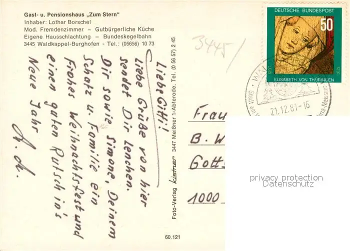 Burghofen Panorama Gast und Pensionshaus Zum Stern Bar Kegelbahn Burghofen postalisch gelaufen 1981 Erhaltung siehe scans [WerneD78] WernPID7