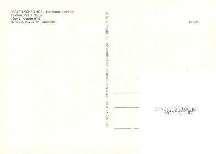 Burgsinn Gasthaus Bayer. Hof Zum singenden Wirt Burgsinn postalisch nicht gelaufen nach 1965 Erhaltung siehe scans [LiesaD40] LiesID40