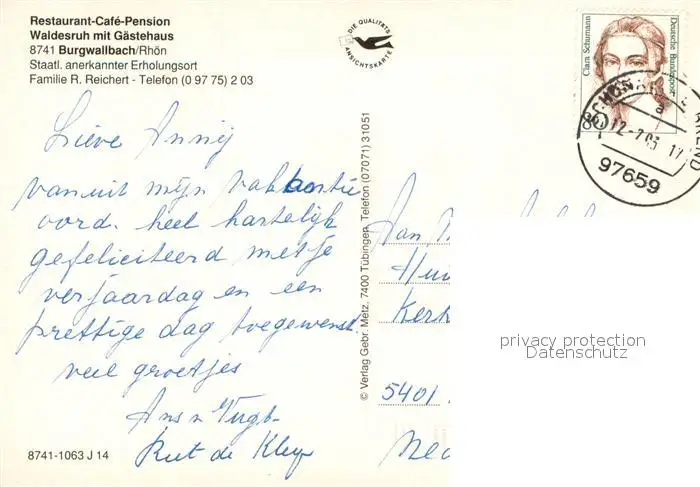 Burgwallbach Restaurant Café Pension Waldesruh Gaestehaus Terrasse Burgwallbach postalisch gelaufen 1993 Erhaltung siehe scans [FriedD77] Frierer