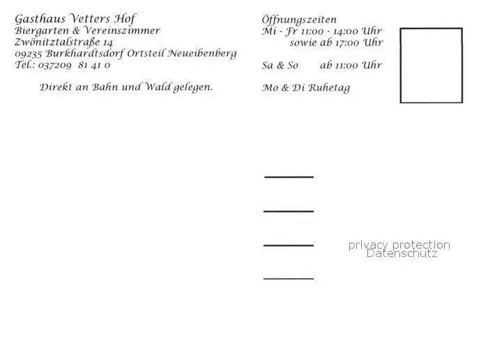 Burkhardtsdorf Gasthaus Vetters Hof Burkhardtsdorf postalisch nicht gelaufen 1921-1965 Erhaltung siehe scans [WerneD78] WernPID7