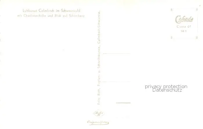 Calmbach_Enz Fliegeraufnahme Totalansicht m. Charlottenhoehe u. Schoemberg Calmbach Enz postalisch nicht gelaufen 1921-1965 Erhaltung siehe scans [LiesaD40] LiesID40