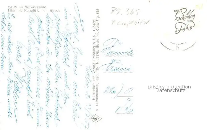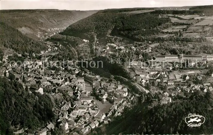 Calw Blick ins Nagoldtal mit Hirsau Schwarzwald Fliegeraufnahme Calw postalisch gelaufen 1957 Erhaltung siehe scans [FriedD77] Frierer