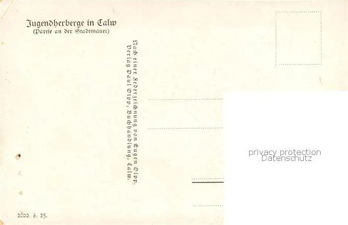 Calw Jugendherberge Partie an der Stadtmauer Federzeichnung E. Olpp Kuenstlerkarte Calw postalisch nicht gelaufen 1921-1965 Erhaltung siehe scans [FriedD77] Frierer