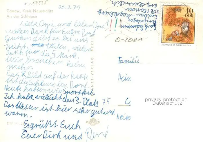 Canow Schleuse Canow postalisch gelaufen 1975 Erhaltung siehe scans [FriedD77] Frierer