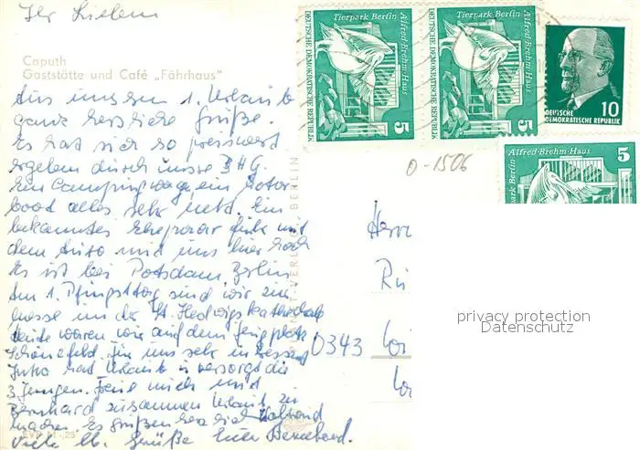 Caputh Gaststaette und Cafe Faehrhaus Caputh postalisch gelaufen 1973 Erhaltung siehe scans [FriedD77] Frierer