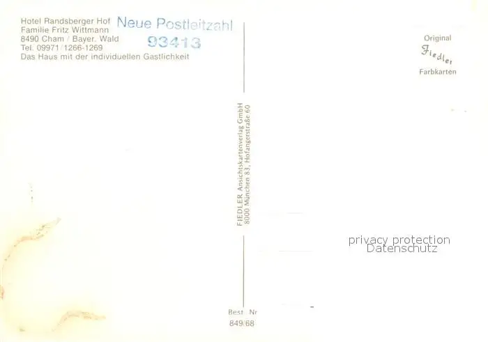 Cham_Oberpfalz Hotel Randsberger Hof Gastraeume Kegelbahn Cham Oberpfalz postalisch nicht gelaufen nach 1965 Erhaltung siehe scans [WerneD78] WernPID7